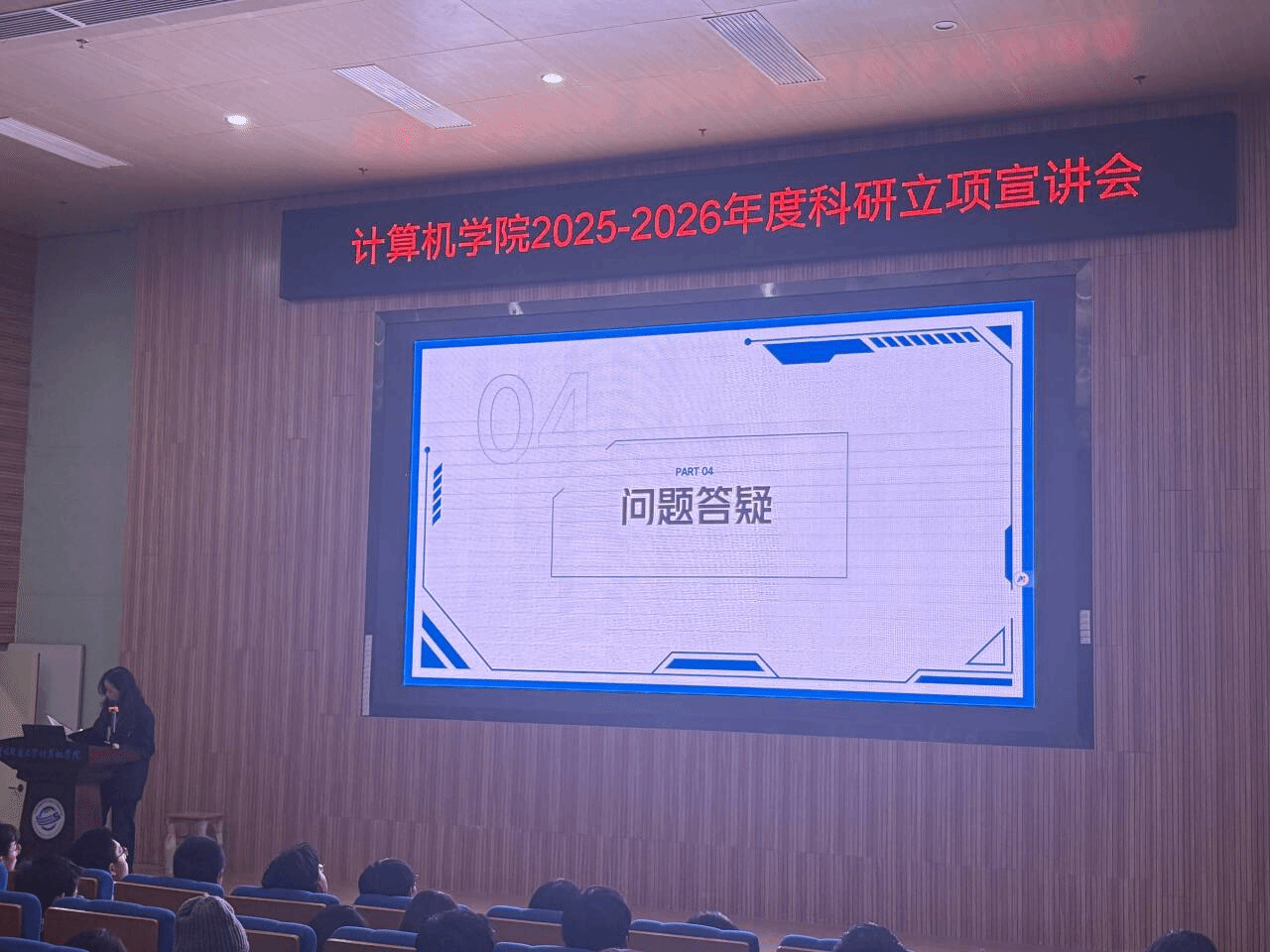 宣讲会最后,2024级辅导员刘佳丹老师结合自身经验,向在场同学分享了关于本科生科研的思考与建议。刘老师指出,大二阶段是开始系统性接触科研的黄金窗口期,同学们不必因“零基础”或“缺乏经验”而自我设限。科研的本质就是在探索中学习、在试错中成长。学院设立科研立项的初衷,正是希望同学们能以项目为牵引,主动走进实验室、融入科研团队、激发学术志趣。她鼓励大家把握机遇,勇于尝试,在真问题中锻炼真本领,在团队协作中学会沟通与担当,让科研实践成为大学生活中一段深刻而富有收获的成长经历。