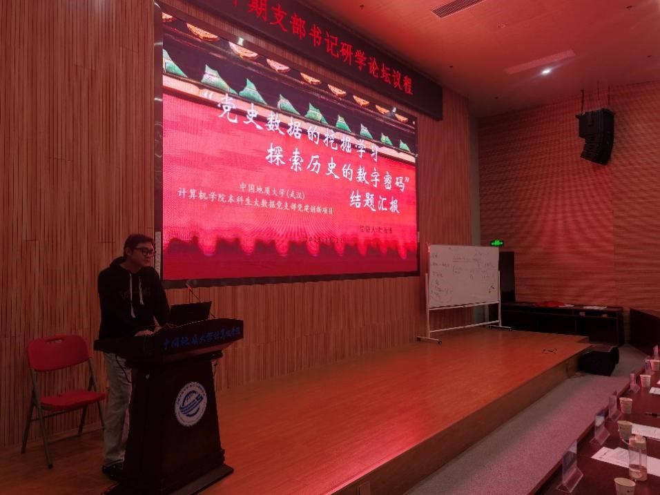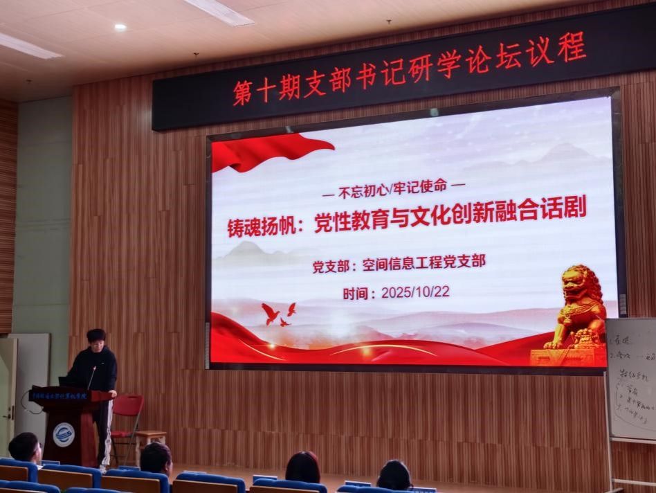 首先是创新项目结题汇报。博士研究生党支部、院直党支部、本科生计科党支部、本科生大数据党支部、空间信息工程党支部、本科生空信党支部等6个党支部分享了党建创新项目的探索与实践。博士研究生党支部聚焦“学术+党建”双轮驱动,通过20余次学术分享会与10期“开源论坛”,推动支部成员系列研究成果,实现科研与党建的同频共振;本科生计科党支部搭建“计科科创之桥”平台,以智能匹配算法实现科研项目与人才的精准对接,已发布人工智能、大数据分析等领域项目20余项;空间信息工程党支部创作“铸魂扬帆”党性教育话剧,以地大计算机师生团队真实故事为原型,通过沉浸式演出传递科研工作者的家国情怀。各支部的创新实践,充分展现了成人影院 党建工作“一支部一品牌”的建设成果。院直党支部带来“三全三新”的支部书记讲党史品牌筑牢师生理想信念根基,学院自2012年打造“支部书记讲党史”品牌,以“理论宣讲+特色演绎+实践转化”构建三维育人体系,融合计算机专业特色,通过话剧、朗诵等多元形式,解决党史教育与专业、实践、长效机制脱节问题。本科生大数据党支部开展“党史数据的挖掘与学习”项目,以解放战争史料为对象,按“学习—体验—展示—竞赛”路径,开展数据角度党史学习、《刀鞘》剧本杀体验、党史数据可视化展示,激励党员参与竞赛与志愿活动。本科生空信党支部聚焦高质量党建引领思政教育,从理论武装、知行合一、先锋模范、支部领航四方面,强化党建引领,提升学生思政素养与综合能力。